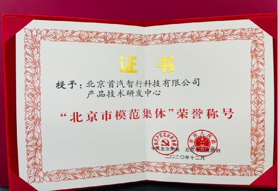 12月22日,北京首汽智行科技有限公司(GOFUN科技)产品技术研发中心荣获北京市委、市政府授予的“北京市模范集体”称号。