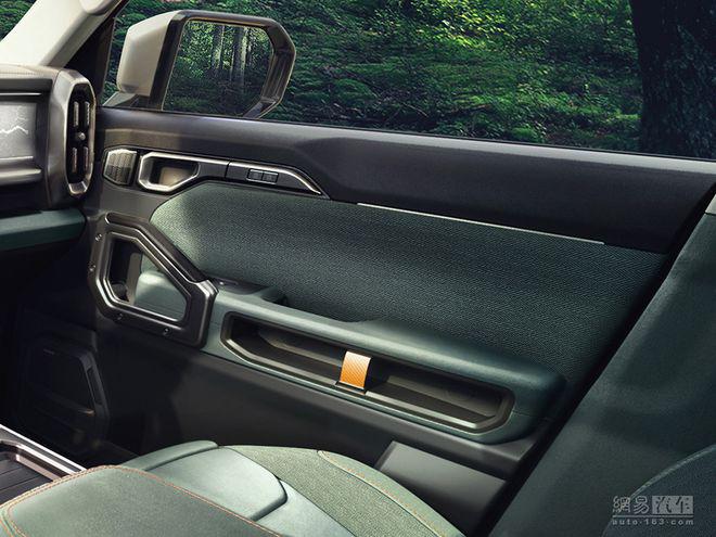另外,在车门、中控区等处还设计了粗壮的拉手,并搭配铆钉设计,与硬派的外观和越野车定位相契合。