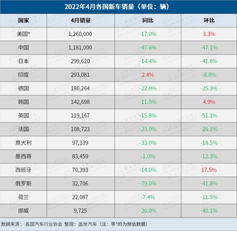 4月份,全球车市继续延续前几个月的下行态势。在疫情多地散发、供应链瓶颈进一步加剧的情况下,市场面临较大挑战。
