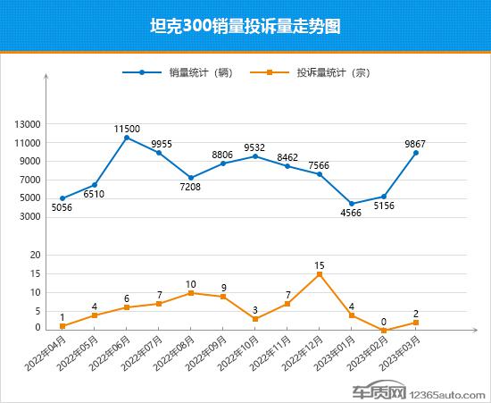 坦克300自2020年底上市以来,市场热度一直未减,特别是在城市版车型推出后,带动销量稳步提升,2022年的累计销量首次突破了10万辆大关。进入2023年,尽管开局不理想,但坦克300迅速调整,实现销量连续反弹,3月份的销量达到了近半年来的最高点,距离再次破万仅一步之遥。相比之下,坦克300近一年来的月投诉表现也可圈可点,除2022年8月和12月投诉量达到两位数外,其余各月份的投诉量均保持在个位数。据车质网数据显示,坦克300投诉多集中在质量问题,但投诉故障点非常分散,很多故障问题大概率为个案。值得一提的是,坦克300近一年来的投诉回复率达到了100%,可见厂家对于车主提出的抱怨和诉求非常重视。作为一款上市已经2年多的车型,坦克300的口碑表现出色,值得肯定。就坦克300近期的销量表现来看,已经形成了惯性上升态势,未来有望冲击万辆大关。